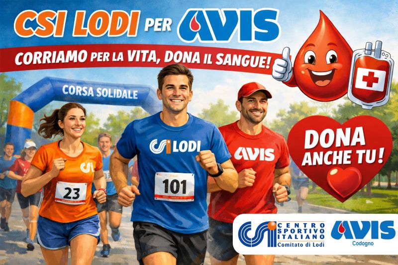 CSI Lodi, in collaborazione con Avis Codogno e Oratorio di Fombio e con il Patrocinio del Comune di Fombio, organizza l’evento “Corri a donare”, una corsa podistica per sensibilizzare alla donazione di sangue.
