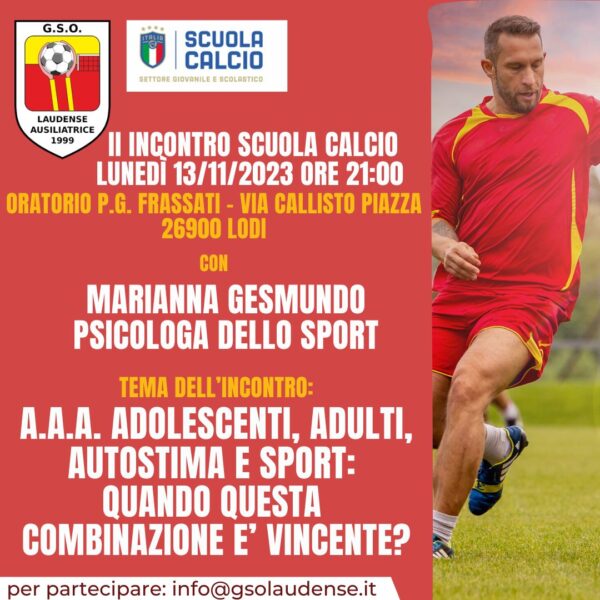 G.S.O Laudense Ausiliatrice organizza un incontro di scuola calcio lunedì 13 novembre dalle ore 21:00 presso l’oratorio P.G. Frassati, in via Callisto Piazza a Lodi.